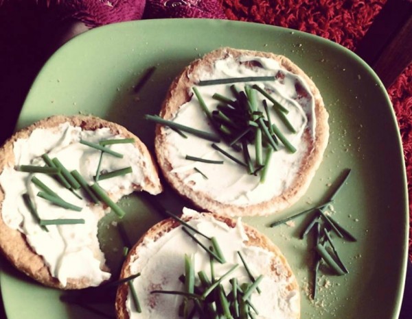 Můj nový recept na skvělou snídani.Doporučuji klidně jen o víkendu. Na obrázku můžete vidět křupavé "polštářky" - Fit Active s lučinou a čerstvou pažitkou. Skvělé i jako menší svačina. :)